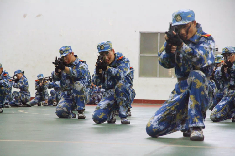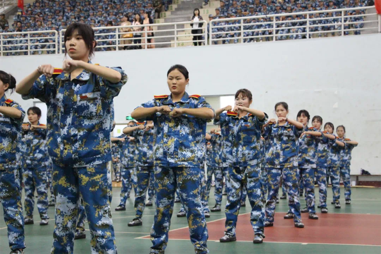 参训学子身着迷彩服,整装待发。国旗护卫队英姿飒爽,迈着铿锵的步伐昂首阔步走过主席台。