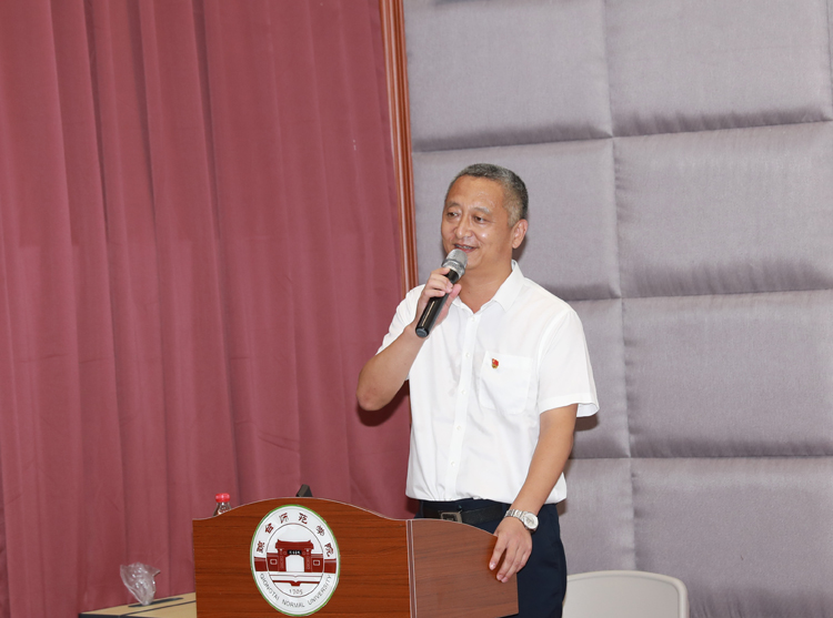 课上,李湖结合党的十九大精神和习近平总书记重要讲话精神,就红色文化的重要性、作用和内涵进行了系统阐述,动情地介绍了琼台革命先烈的英勇事迹和高尚品质,对今后如何进一步更好地传承琼台红色基因、挖掘琼台文化特色,从而推动构建学校“三全育人”大思政格局提出了自己的看法。李湖指出,就像三百年来一直延续不变的校名一样,琼台秉承“勤宣德教、为国育才”的办学初衷,弦歌不辍,书声不断,在不同的历史时期特别是民主革命时期,为国家、为民族、为海南做出卓越贡献,全体琼台人一定要谨记先贤“无负海山、敢为琼先”的遗志和教诲,在新时代握紧属于我们的接力棒,再接再厉、奋进担当,蹄疾步稳地走好琼台的新征程。