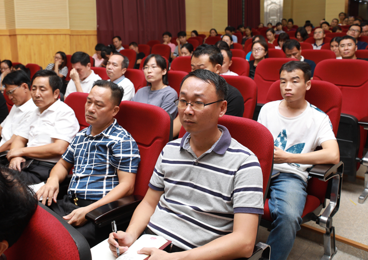 为贯彻落实中央关于深入开展“不忘初心、牢记使命”主题教育的要求,持续推进学校思想政治建设和作风建设,10月21日下午,我校党委书记李湖在桂林洋校区实D101课室为学校中层干部和全体党员师生上了一堂题为《传承红色基因 续写育人新篇》的生动党课,桂林洋校区多个多媒体教室和府城校区远程教育中心进行了现场直播,省委第九巡回指导组组长郭奕秋、副组长徐笑冰率全体组员列席。