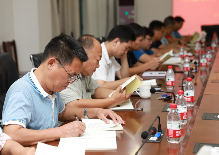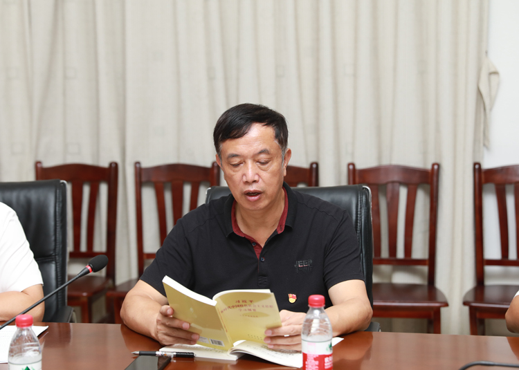 李湖书记主持学习会,他强调要在学通、弄懂、做实上面下功夫,要不断创新学习方式、丰富学习内容,推动学习向广度深度发展。李湖书记还要求全校师生党员要向张富清、李连成、黄文秀等榜样们学习,坚定信仰、以身作则、服务群众、奋发作为,立足岗位守初心,甘于奉献担使命,为实现中华民族伟大复兴和海南自贸区(港)建设发展贡献自己全部的力量。