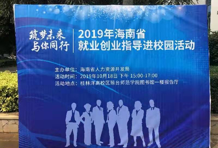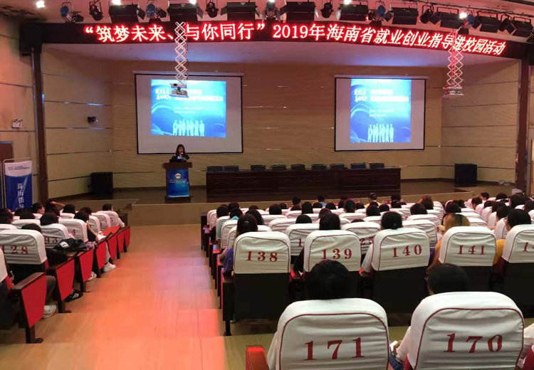 梦想激扬人生,创业成就未来。为深入实施高校毕业生就业创业促进计划,贯彻落实人力资源社会保障部在全国启动实施2019年高校毕业生就业服务月活动,帮助我校大学生了解就业形势、就业创业政策和用人需求,有利于毕业生更好的规划自己的未来,2019年10月18日下午,我校与海南省人力资源开发局联合举办,“筑梦未来、与你同行”高校毕业生就业创业进校园沙龙活动在我校图书馆报告厅顺利举行。
