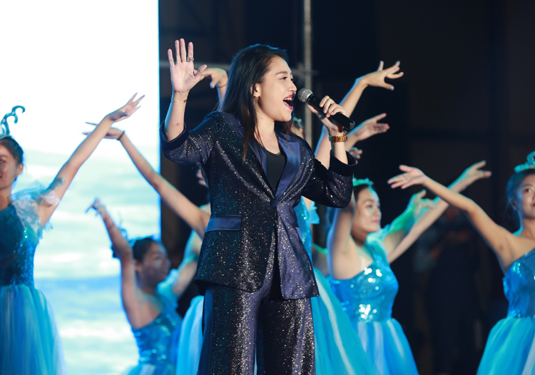 在最后一个篇章《欢庆华诞,华夏山河耀神州》中,大家尽情表达对伟大祖国的生日祝贺和无限热爱。古筝合奏《盛世国乐》展示了历史悠久、博大精深的中华传统文化,讴歌美好的生活和时代。吴晓云老师带来的独唱《海之南》深情歌颂了美丽的海南岛,展现了我省在祖国母亲的指引和支持下正大步向经济繁荣、社会文明、生态宜居、人民幸福的目标奋勇前进。男女对唱《共和国之恋》致敬并祝福新中国成立70周年,传达了琼台学子的赤子初心和爱国之情。