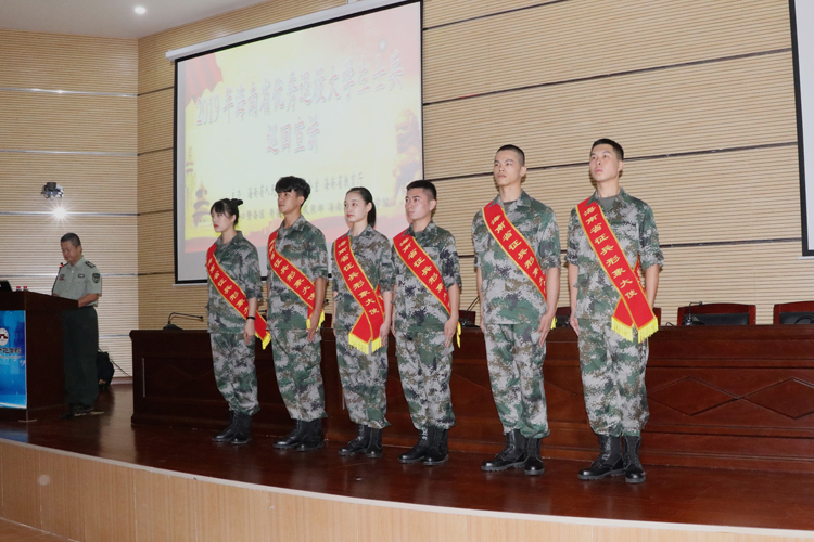 来自海南大学、海南师范大学、三亚学院和海南外国语学院的6名优秀退役大学生依次上台宣讲。他们身着军装,满怀激情,给大家分享了军旅生活的快乐和收获,讲述了自己在军旅生涯中的亲身经历和由衷感悟,鼓励同学们踊跃报名参军,主动接受祖国的挑选。此次宣讲活动就在全场合唱《红旗飘飘》中圆满结束。
