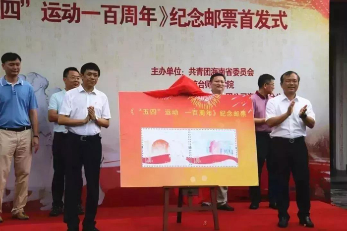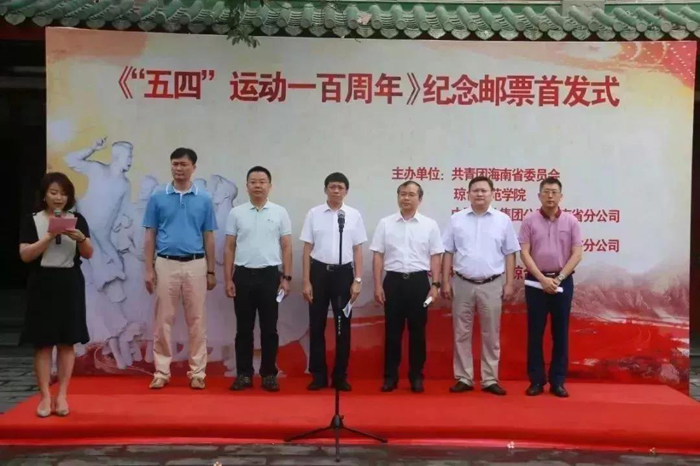 5月4日上午,《五四运动一百周年》纪念邮票海南首发式在我校府城校区¡重举行,这是我省开展纪念五四运动100周年活动的一项重要内容。共青团海南省委员会副书记陈文强;琼台师范学院党委委员、副院长王华;中国邮政集团公司海南省分公司副总经理陈奋;中国邮政集团公司海口市分公司总经理李卓捷出席本次活动,参加今天发行仪式还有琼台师范学院学生、海南省邮政分公司的员工和社会各界人士共300多人。