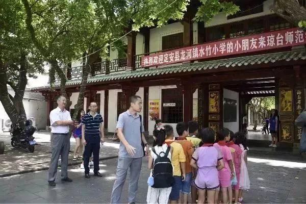 校党委李湖书记在琼台书院欢迎前来参观的孩子们