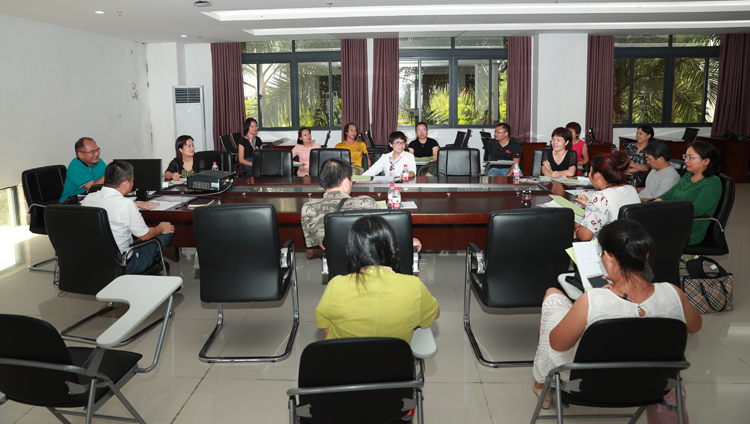 各代表团就《琼台师范学院章程》、《关于调整绩效工资的意见》和《琼台校歌》三篇审议稿进行讨论,随后,各团长向主席团汇报了讨论情况。
