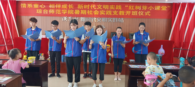 7月15日,由市委宣传部、团市委、市志联与我校共同打造的市级新时代文明实践志愿服务项目——“红树芽小课堂”在美兰区演丰镇演东村新时代文明实践站正式启动。我校志愿者将与演丰镇70余名留守儿童共度暑假的美好时光。