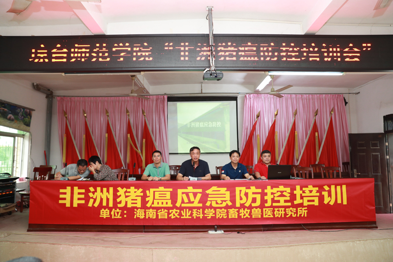 9月6日,学校邀请海南省农业科学院畜牧兽医研究所刘海雄教授为定安县龙河镇养殖户开展非洲猪瘟应急防控知识讲座,有14个村委会100个养殖户和贫困户参加讲座学习。