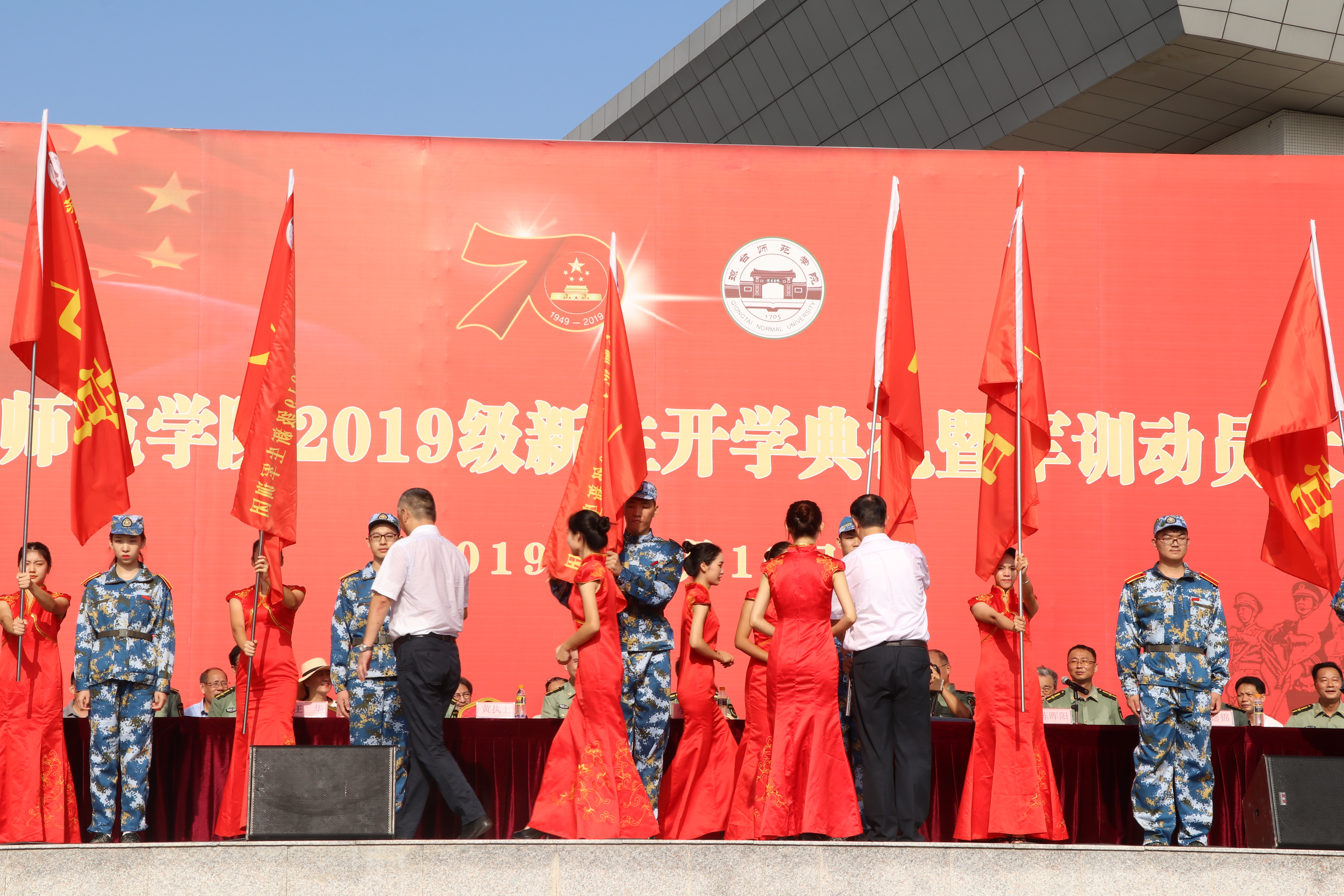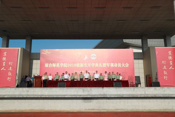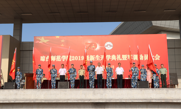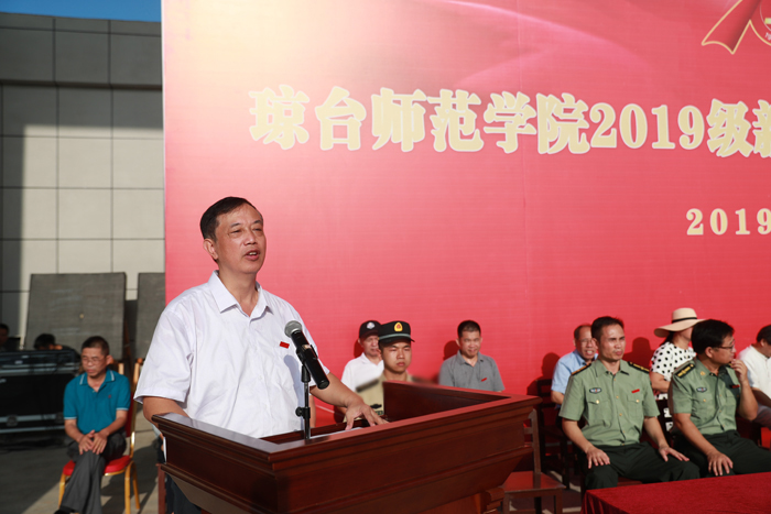 会上,教师代表、在校生代表、新生代表作了热情洋溢的发言,王华副校长宣读了《琼台师范学院2019级新生军训实施方案》,军训教官和军训团团长进行军训讲话。校领导给军训各营授旗。