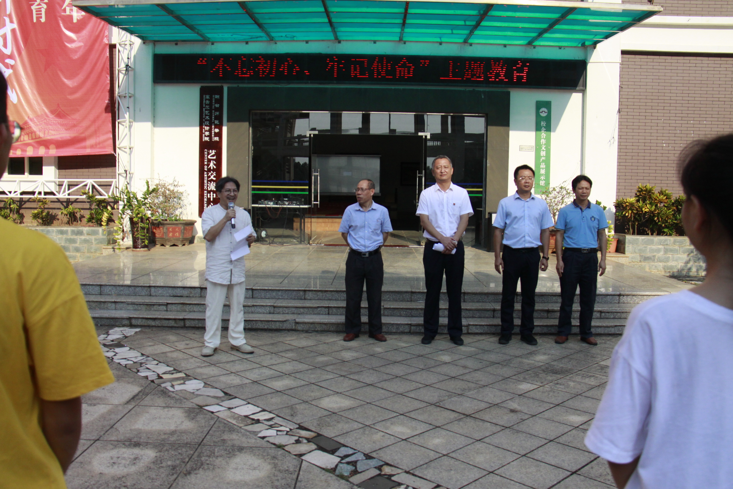 李湖书记致辞,他说我们学校是有着优良的文艺传统、红色基因的高校,师生将对祖国的热爱诉诸笔端,通过翰墨丹青、相机等多种形式展现出了新中国成立70年的光辉岁月和伟大成就。此次展览对于弘扬中华优秀传统文化、激发爱国热情,营造浓郁的美育氛围,提升学生专业技能、促进教师队伍建设具有重要意义。