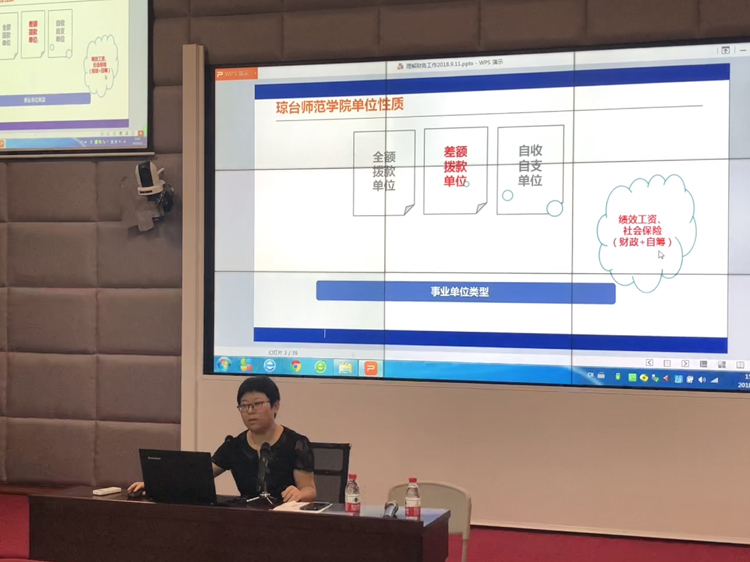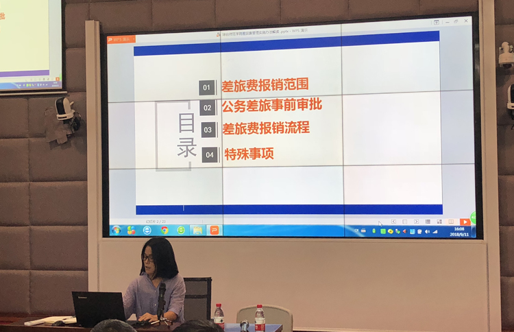 刘丹同志从差旅费的范围、事前审批、报账流程及特殊事项等四个方面对琼台第65号文进行了解析,同时通过大量的原始素材,详细地介绍了报账工作的全过程,着重强调了票据报销的注意事项,让学校教职工对如何报账有了更清晰的认识。