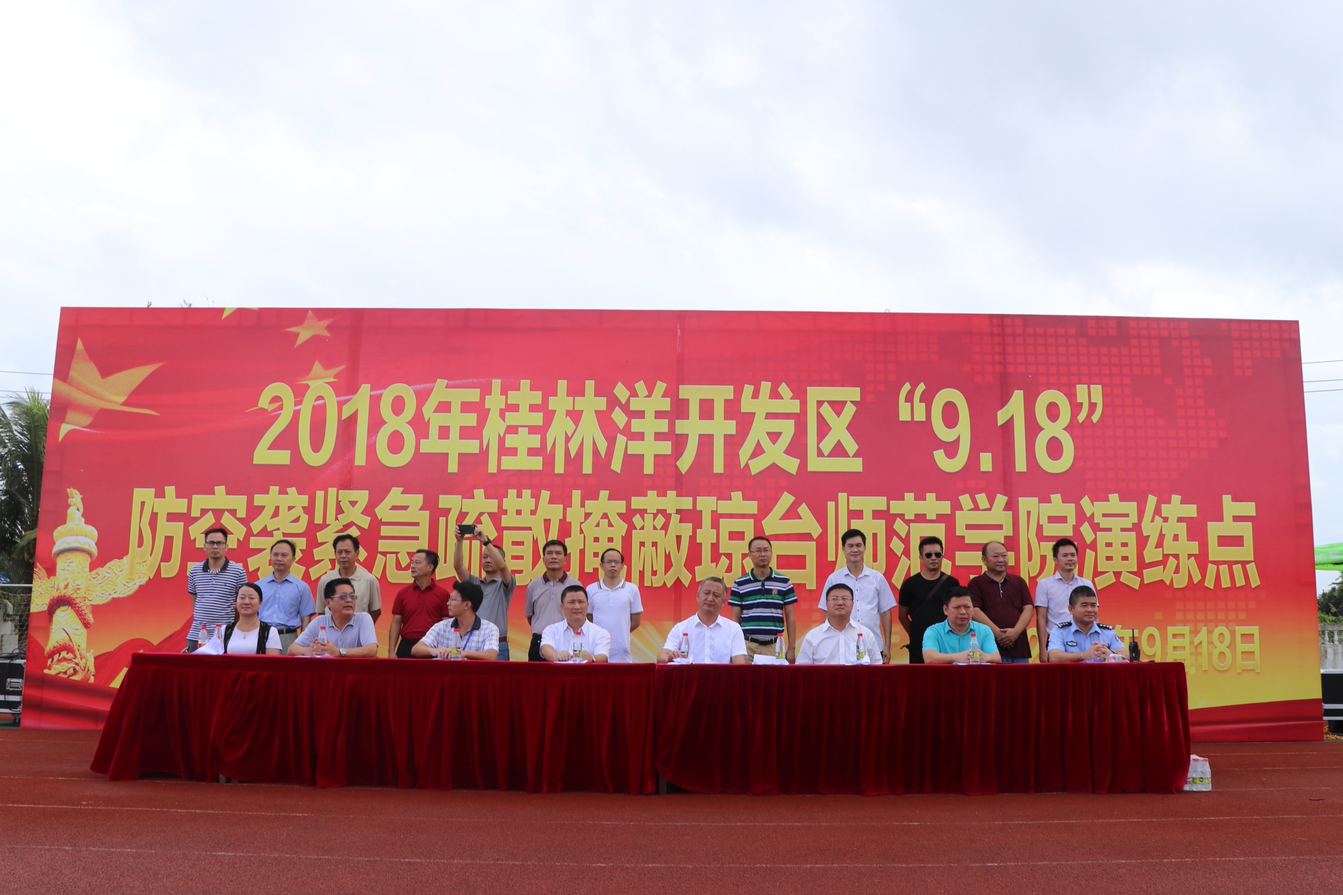 我校桂林洋校区作为海口市防空警报试鸣及应急疏散救护演练重要的会场,三千余名18级新生及武警部队海南省总队机动支队带训官兵参加本次演练。海口市高校区派出所所长,桂林洋开发区的夏琛舸主任、周正利副主任、郑钧副处长等在主席台就座。我校校办、宣传统战部、教务处、后勤处等主要负责人,团委、学生处负责人,各院系党总支书记、学工办主任、辅导员及新生班级班主任参与此次演习。