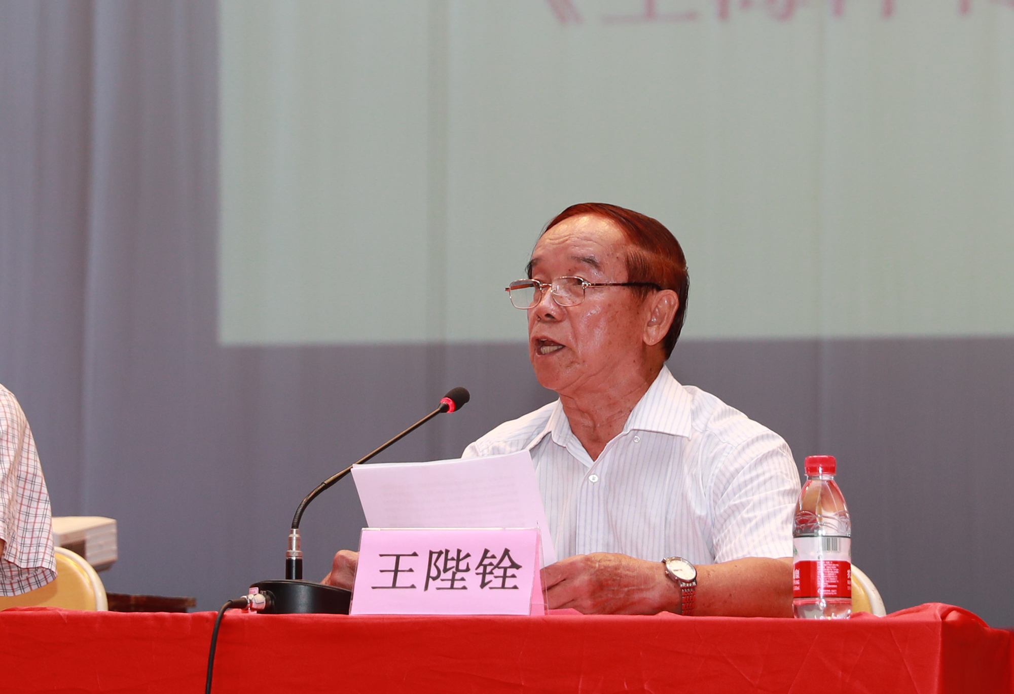 万力维副院长向在场嘉宾简要介绍了革命烈士王海萍轰轰烈烈的光荣一生,指出他是我省走出的著名英雄人物,曾担任福建省委书记兼军委书记,领导过震撼全国的闽西暴动,28岁时壮烈牺牲,被追认为革命烈士,其夫人梁惠贞亦是琼台校友,也于革命中光荣就义,正是“一家双烈士,琼台两光荣”。