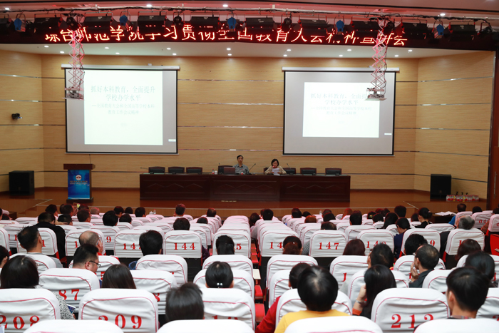 曹阳校长就全国教育大会提出的主要任务和具体目标、我国高等教育发展的现状、我国科技文化事业发展的现状、师范院校和师范生的发展和需求以及新时代高等教育面临的巨大挑战向干部教师做了详细诠释。他指出,我们一定要牢牢抓住“九个坚持”,始终把握“四个回归”内涵,按照创新创业教育要求,找准定位、探索方法,推动教育教学和人才培养的思想创新、理念创新、技术创新和模式创新。他强调,我们都是琼台人,琼台就是我们家,每一名干部教师都应以时不我待的责任担当和昂扬向上的精神状态,推动学校各项工作全面进步发展,为国家大力推动实现高等教育质量的“变轨超车”和海南深化改革开放,书写好琼台师范学院奋进之笔。