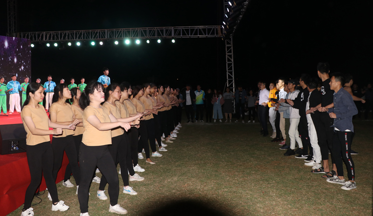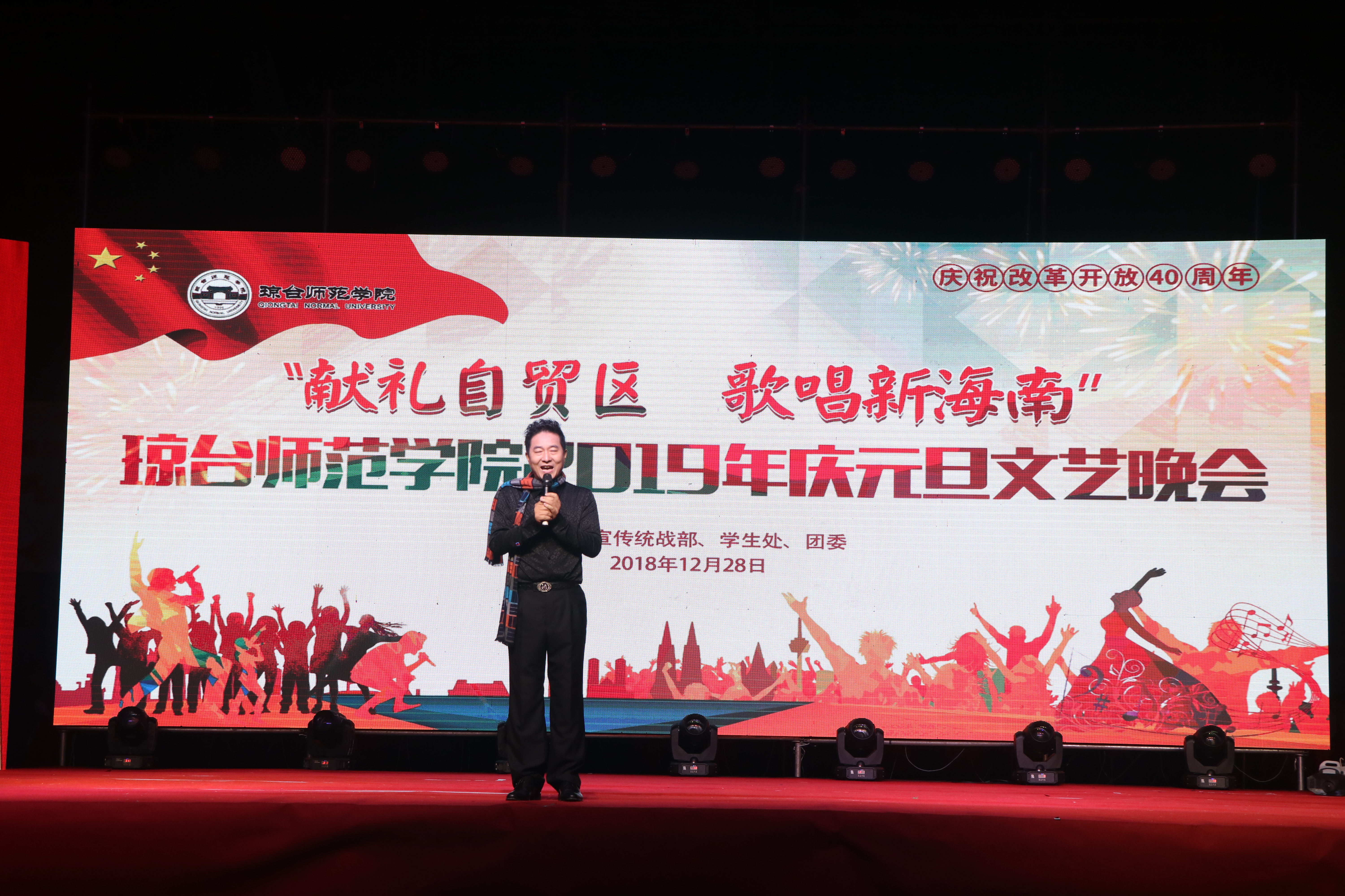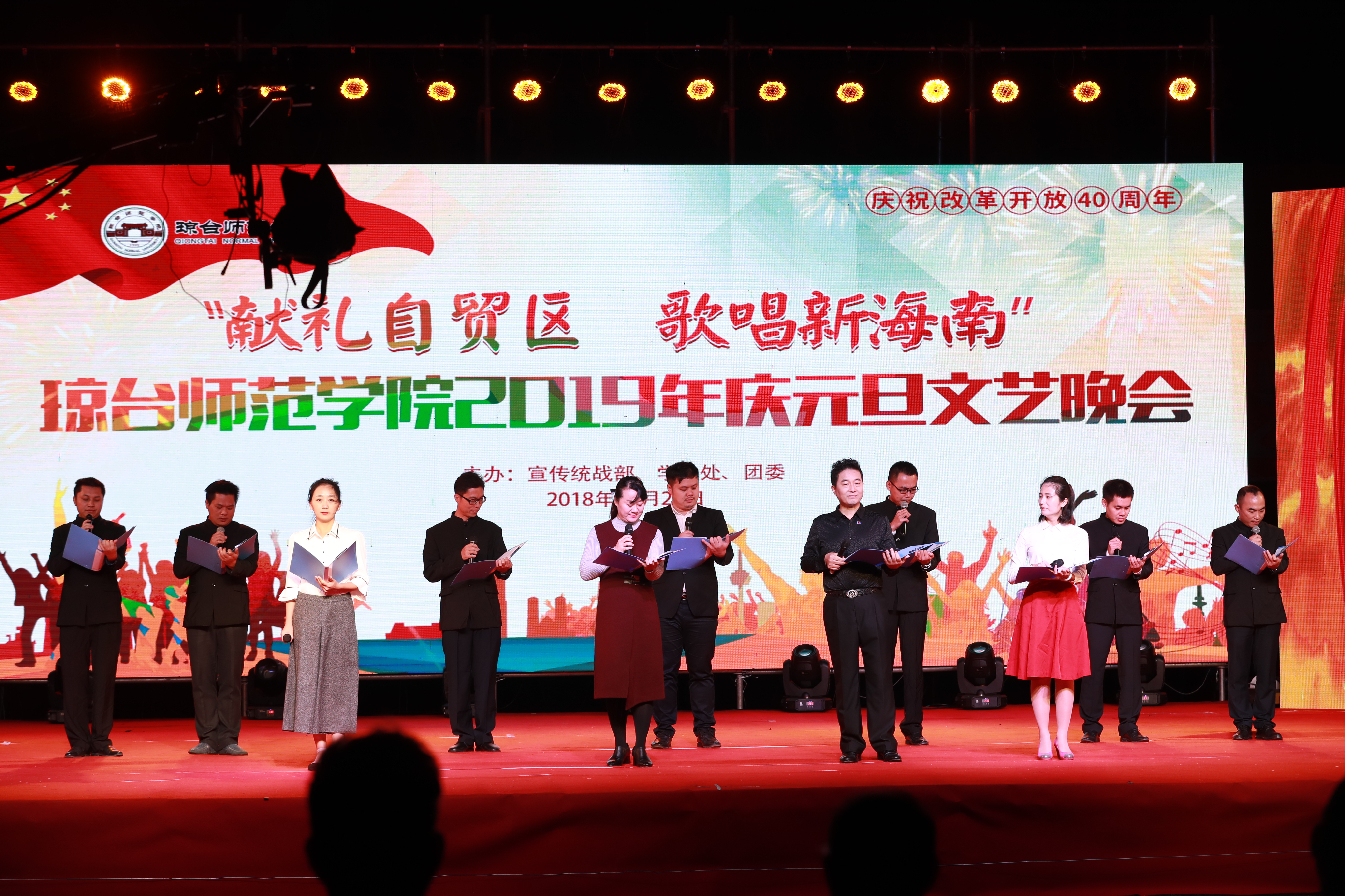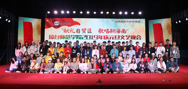 “献礼自贸区 歌唱新海南”我校2019年元旦晚会于12月28日晚在桂林洋校区足球场举行。校党委书记李湖同志、校党委委员曾德锦同志,相关部门负责人以及全校师生共同观看晚会。当天元旦晚会也同时在线直播,在校学生与亲友们通过屏幕共同观看晚会。