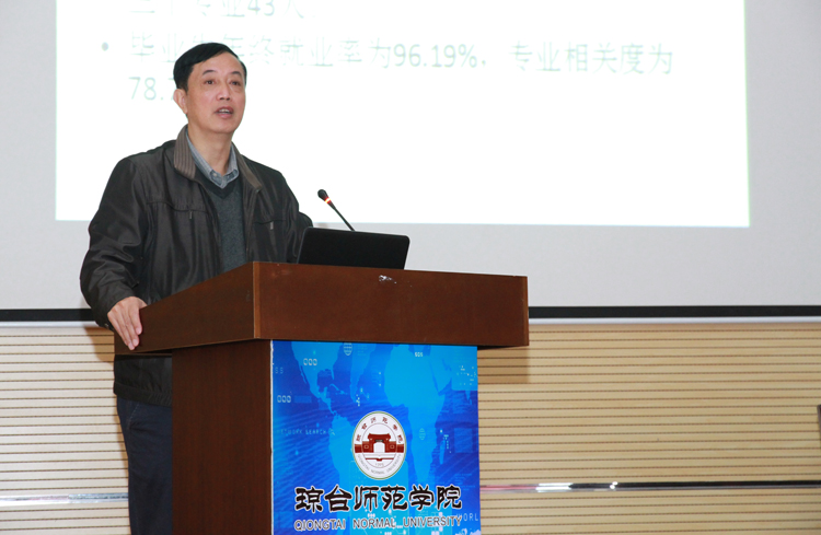 曹阳院长主持会议,他从招生情况、教育教学、师资队伍建设、科研现状、财务情况、学校服务保障、民生建设、党建等8个方面总结了2018年我校的发展情况,并强调2019年海南自由贸易试验区的建设将全面铺开,创新实验实施方案、教育改革方案将给琼台带来更多、更大的机遇,希望大家努力工作抓住机遇把琼台建设好。