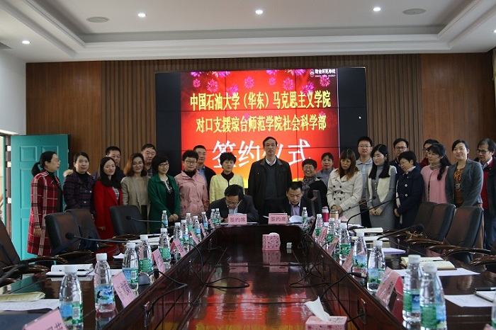 1月17日上午,中国石油大学(华东)马克思主义学院王建军院长率领的专家团一行八人到我校访问,进行与我校社科部对口支援共建的签约仪式。仪式在桂林洋行政楼二楼会议室举行,我校曹阳院长、社科部干部教师出席。
