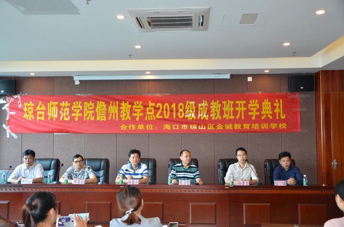 4月14日,我校在儋州教学点举行了首届成人教育新生班开学典礼,继续教育部负责人林春光、儋州市中职技术学校副校长罗春祥、合作单位金诚教育培训学校校长陈泽图等及2018级部分成招新生参加典礼。