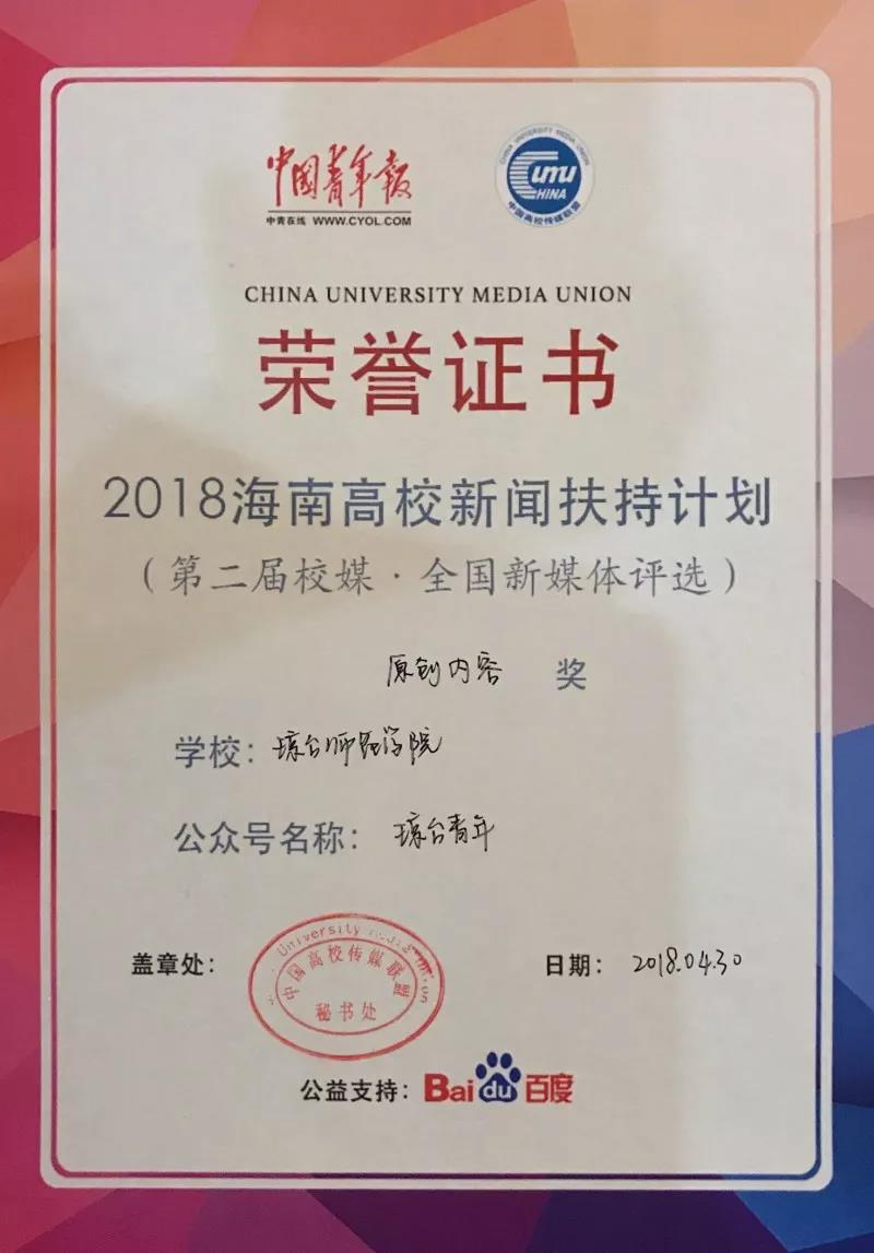 我校公众号琼台青年所获奖项