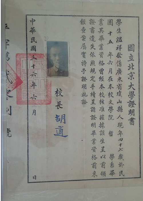 捐赠仪式上,温心园老校长的孙女温洁女士将捐赠的文物史料一一交接到曹阳院长手中,这些文物史料包括:广东省政府教育厅任命温心园为琼崖联合中学粤北分校校长的任命书,温老校长国立北京大学的证明书,国立中山大学、香港私立珠海书院的聘书等。李湖书记看到这些珍贵的史料很兴奋,他表示这是琼台师范学院的瑰宝,感谢温心园老校长对琼台做出的贡献,也感谢温洁女士和温海先生把这么珍贵的史料捐赠给我校。