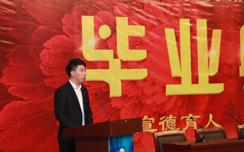 财务管理专业的韩兴友同学代表2018届毕业生发言,他对学校、老师、父母的辛勤培养表示衷心的感谢和崇高的敬意。他回顾了不断创新进取的大学生活与终身难忘的校学生会的工作经历,代表全体毕业生向母校送上了真心的祝福,也祝愿2018届的兄弟姐妹前程似锦。