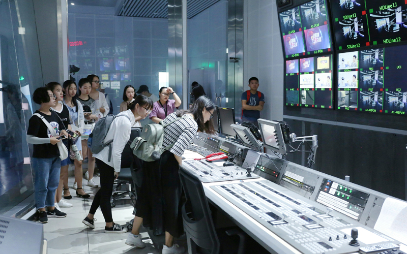 在丁黎平总裁带领下,与会者参观、考察了海南广播电视总台工作间、《直播海南》《直通自贸港》等栏目的节目录制现场。我校新闻采编专业的部分学生随同参观、学习。参观的学生现场看到了新闻工作者的工作现场,既好奇又兴奋,拓宽了视野,对新闻创作、新媒体运营有了更直观的认识。