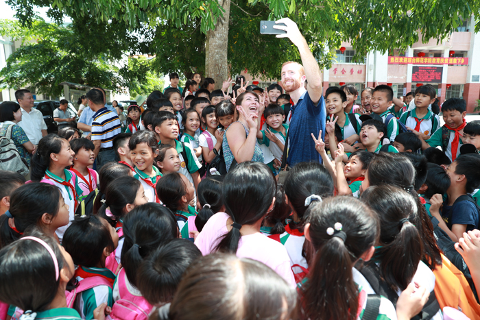 下课以后,许多第一次见到外教老师的同学们纷纷围拢过来,有同学试着用英语问候“老师好”、“老师你吃饭了吗”。