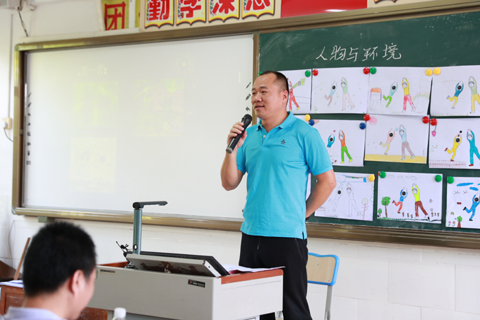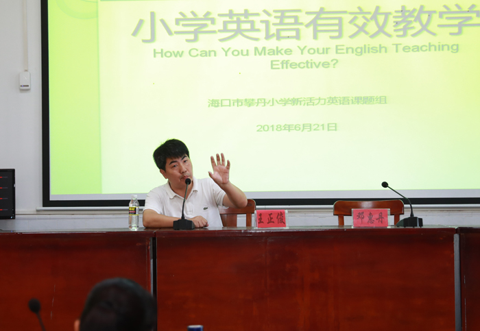 之后,新活力英语课题创始人、主持人、琼山区攀丹小学校长王正俊,海口市美兰区教研室美术教研员陈孝峰分别对两位老师授课进行了点评和分析,并就如何提高课堂质量向龙河镇中心学校的老师分享教育经验,指导其创新课堂形式。