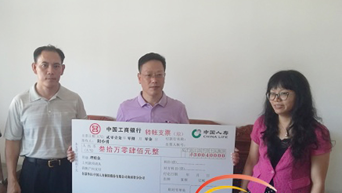 8月9日上午,中国人寿保险海南分公司领导慰问了我校原驻村第一书记阳小勇,并把30.04万元保险理赔金交到了阳小勇老师手里。海南省委组织部、定安县组织部的领导及省内十多家媒体,我校何进威副校长、校办负责人等出席理赔仪式。