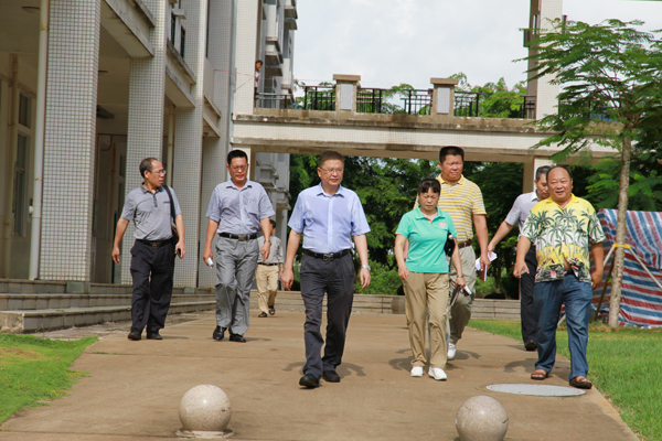 新学期开学在即,我校主要负责人孔令德同志、万力维副校长率领有关部门人员考察了解两校区的教学和行政设施建设。8月18日上午,孔令德同志巡视了桂林洋整个校区,从行政楼到培训楼、文科楼、运动场、学生宿舍、食堂一直到图书馆,重点检查了教学设施、校园建设、安全保卫,文明卫生以及后勤保障等方面,每到一处,校领导都认真询问各项工作的准备情况,详细了解工作中的具体问题和困难,并现场举行了办公会,务求真落实、出实效。8月27日,孔令德同志和万力维副校长等又检查了府城校区,重点检查了学生宿舍,对暑期宿舍维修、空调安装等进行了详细了解和布置安排。