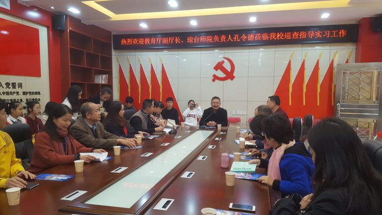 12月18日上午,海南省教育厅副厅长、我校主持党政全面工作负责人孔令德一行到琼山五小、攀丹小学看望实习生并深入课堂开展教育实习巡查指导,万力维副校长、中文系龙文希主任、外语系马玉蓉主任、幼儿师范学院罗丽丹副院长、教务处孙为副处长等有关同志陪同调研。