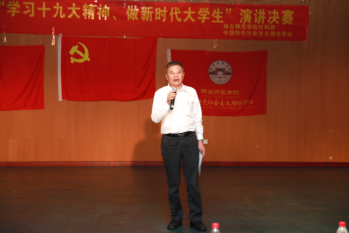 11月2日晚,音乐厅里高朋满座,我校学生社团中国特色社会主义理论学社(简称“中社”)主办的“学习十九大精神,做新时代大学生”主题演讲决赛在这里进行。我校主持全面工作负责人孔令德同志、万力维副校长及相关部门负责人亲临现场观看比赛。
