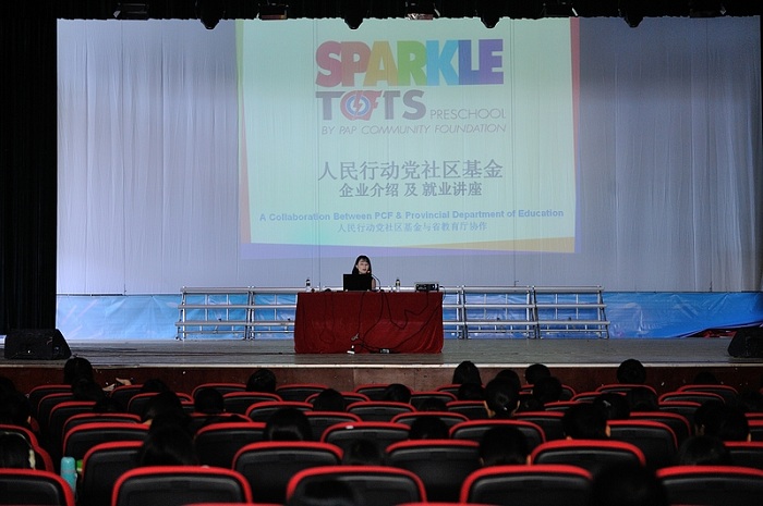 基金会执行董事梁莹女士、顾问孙雯莉女士就此次来琼目的向我校进行了说明,表示该基金会下属有300多间幼稚园,约占新加坡幼教机构的70-80%,属于公立非盈利性的教育机构,该机构每年均从中国招聘部分华文幼师,此次来琼希望也能从海南各高校招聘华文幼师。万力维副校长代表学校欢迎客人到访,她详细介绍了我校学前教育专业的情况,表达了我校同意推荐优秀毕业生赴新加坡任教的意向。会谈后,新加坡客人向我校学前教育专业毕业生进行了招聘宣讲,宣讲会吸引了大批学生到场关注,许多学生纷纷填写意向书,希望明年毕业后能有机会到新加坡就业。