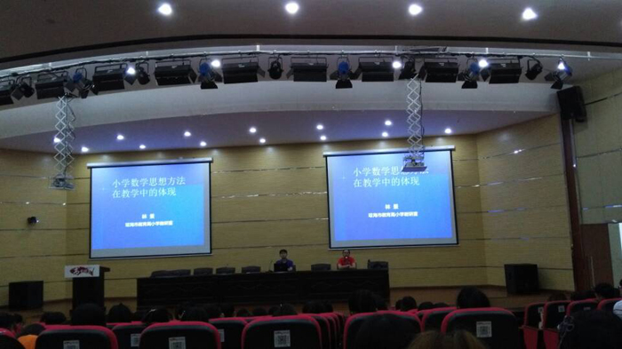 上午,林景教授以《数学思想方法在教学中的体现》为题,以生动的例子多角度地阐述了数学思想方法在教学中的体现,林教授有着丰富的一线教学经验和资深的国培、省培、骨干教师培训等项目培训指导资历,他的精彩讲座充分让广大师生感受到了数学思想方法的魅力。