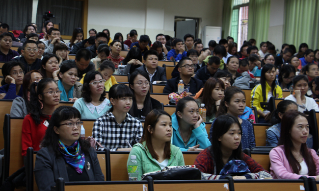“只有不断学习,才能站在这个讲台上”,章教授认为,现代多媒体技术是为人师者必须要学习和掌握的重要内容,她在报告中分别针对不同的听讲者,结合在教学实践中的体会,指出教师要具备有效利用工具与人进行认知的能力;强调信息时代的学生对数字化世界的理解、掌握与熟练运用的程度,可能甚于师长,因此面对信息时代的挑战,教师更需要更新知识结构,努力掌握现代教育技术,从而更好地完成教学任务。章教授对云计算、云技术、云笔记、微课、慕课等现代新型教育技术作了详细介绍,还与参会师生进行了互动,现场展示了信息技术在课堂上的应用,开拓了我校师生的思维。