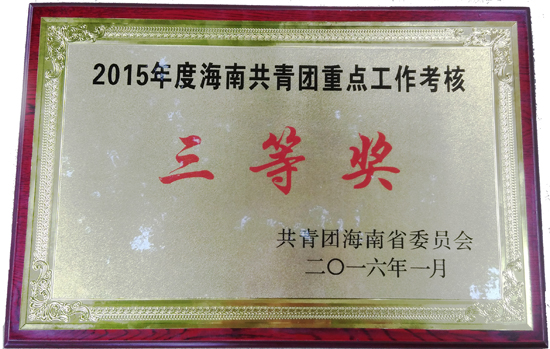 3月31日,共青团海南省委六届五次全体(扩大)会议在海口召开,会议总结了2015年全省共青团工作,对2016年工作进行了部署,表彰了2015年海南共青团重点工作先进集体。我校团委荣获“2015年度海南共青团重点工作考核”三等奖。