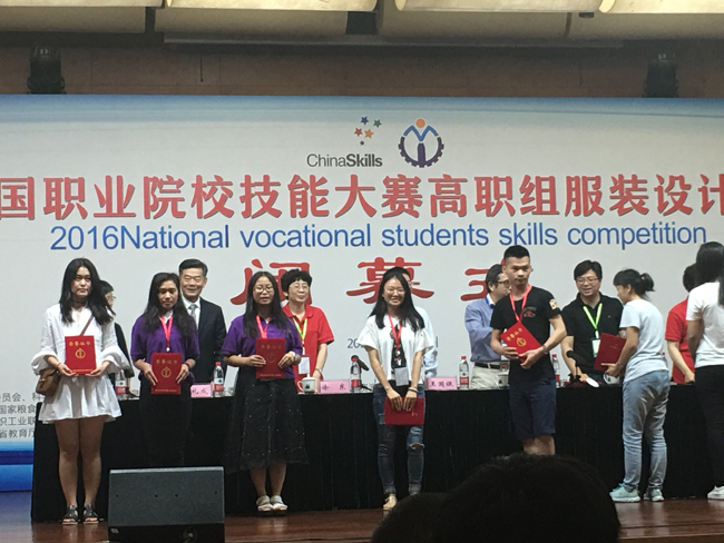服装技能大赛龙丹同学获三等奖颁奖现场