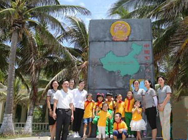 9月1日,三沙市永兴学校与全国其他中小学一样如期开学了。阳光下,师生们的礼视中,鲜艳的五星红旗旗徐徐升起,响亮的国歌回荡蓝天碧海。开学第一天,老师领着学生们参观了国家主权界碑,开堂第一课讲的就是《维护海洋权益》。