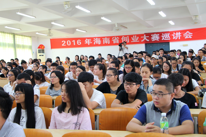 9月24日上午,由海南省人力资源开发局举办的“2016年海南省创业大赛”首场宣讲会在我校文C202举行,海南省人力资源开发局人才管理服务处处长文振忠、调研员唐甸辉带领豪华宣讲团与我校学生面对面交流。