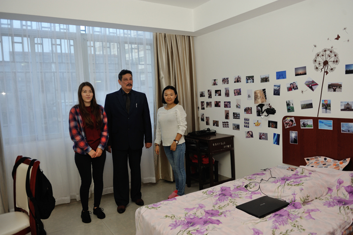 卡尔梅克校长到学生宿舍看望在我校留学的卡尔梅克大学学生
