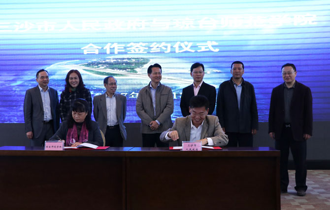 签约前,三沙市委书记肖杰会见了我校万力维副校长一行,他感谢琼台师范学院长期支持永兴学校的建设,为三沙教育做出了巨大的贡献,肯定了我校有效解决了驻岛居民子女就近入学问题,开展足球裁判、社交礼仪等技能培训,提高了驻岛居民的职业技能和文化水平。相信通过加强合作共建,一定能将永兴学校建设成为祖国南海上一所优质、精品、特色的学校。万力维副校长表示,服务海南基础教育是琼台师范学院的办学宗旨,也是职责所在,与三沙市政府合作共建永兴学校既拓宽了我校基础教育的服务领域,又提高了老师们的思想境界,意义深远。在新的里程中,海南最古老的学府和祖国最南端的地级市一定会携手创造出非同一般的培养培训业绩,一定会述说出非同一般的教育故事。
