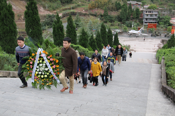 登上青杠坡烈士纪念碑敬献花圈
