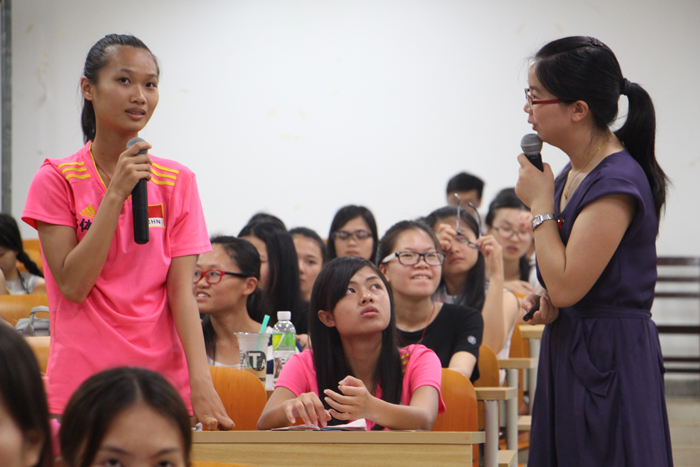鲁建瑜讲师讲解了什么是性病、如何预防艾滋病,着重讲解了艾滋病传播的途径主要有性途径、血液途径、母婴途径等;并告诉同学们如何预防艾滋病,在异性面前,如何敢于说“不”。讲座中还进行了知识问答、现场互动及演示如何正确使用安全套等环节,让同学们切实感受到了“性”的奇妙、“艾”的痛苦。