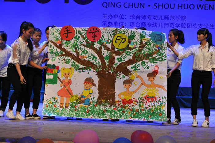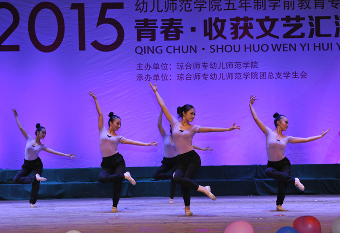 演出为师生们献上了一场精彩纷呈、专业特色鲜明的艺术享受,节目构思新颖、编排紧凑,既有反映学生专业技能水平的民族舞蹈、幼儿舞蹈、韵律操、基本功展示、钢琴四手联弹、手掌印画、美工展示以及儿童歌曲联唱,也有体现学生综合素质,表达毕业情怀的诗朗诵、大合唱,更有专业教师合演的节目,全面展示了五年制学前教育专业学生“弹、唱、画、跳、说、做”等方面扎实的专业基本功及优秀的舞台艺术表现力,展现了本专业学生良好的专业素养和专业技能。演出节目中最具学前教育专业特色的两个舞蹈《椰乡》和《基本功展示》被校团委选中,代表学院出演我校即将举行的元旦晚会。