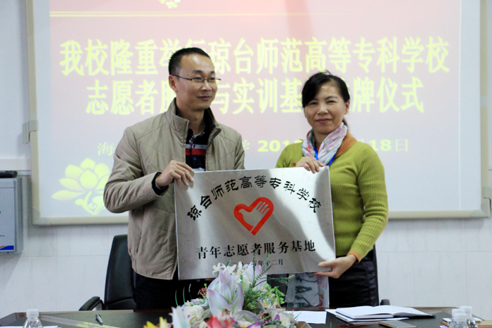 12月18日下午,我校志愿者服务与美术系实训基地挂牌仪式海口市十三小学举行。