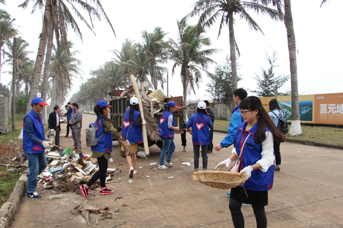 上午8时40分,150名身着蓝色马甲的志愿者聚集在学校西门口,校办曾彪主任做了活动说明和强调了安全事项,宣传统战部郭志东部长阐释了学雷锋、助双创的意义,志愿者们便开赴桂林洋海滩。在海边,志愿者们沿着蜿蜒的海岸线依次排开,投入到清扫工作中,瞬时,蓝色铺满了海滩,“蓝马甲”们不畏艰险与肮脏,顶着太阳,用双手捡起了海滩的垃圾,鞋子进了一粒粒沙,嘴巴干渴手掌泛黄,脸上却满是笑容。经过大家两个多小时的不畏艰辛,桂林洋海滩比原先更让人悦目。