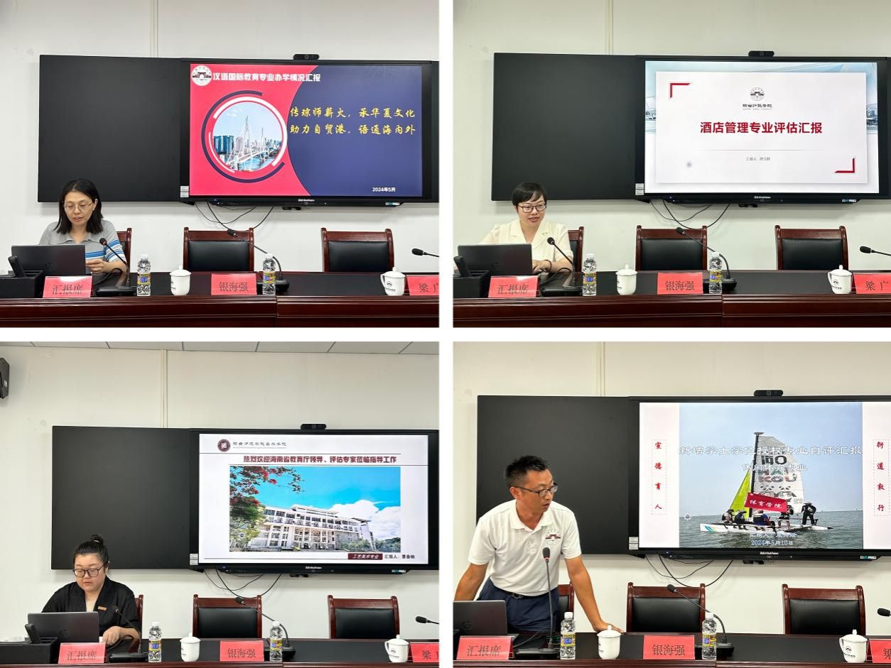 下午3点,评估汇报会在桂林洋校区行政楼四楼会议室进行。银海强副校长结合学校本科教学评建工作实际,围绕《海南省普通高等学校学士学位授权专业审核标准》,对标本科专业评估指标体系,从五个方面向专家组介绍了学校本科专业办学情况。四个参评专业就四年来的建设情况向专家组逐一作了汇报。