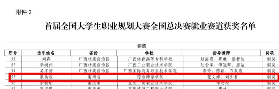 国奖背后的故事:蒙禹辰,女,汉族,海南昌江人,2004年10月出生,共青团员,琼台师范学院学前教育专业2019级定向公培生。入学五年平均学分绩点达3.96,学业成绩、综测成绩排名年级第一(1/368)。曾获本专科生国家奖学金、中等职业教育国家奖学金、第二十一届当代杯全国幼儿教师职业技能大赛一等奖、2022年度海南省“大学生自强之星”、2021年度“海南省优秀共青团员”、第九届中国国际“互联网+”创新创业大赛海南赛区银奖、海南自贸港第二届大学生职业生涯规划大赛一等奖等60余项荣誉。