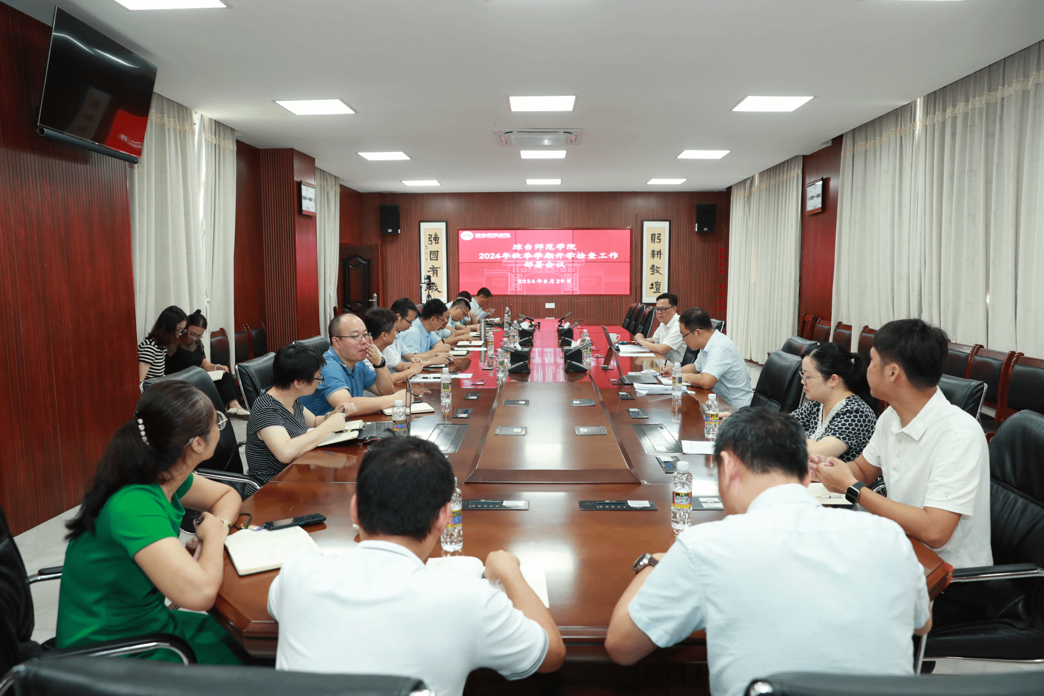 为确保2024年秋季学期安全、平稳、有序开学,打造良好的校园育人环境。8月29日上午,我校在桂林洋校区行政楼三楼会议室召开2024年秋季学期开学检查工作部署会议,对开学检查等重点工作进行安排部署。受校党委书记吕治国、校长刘湘洪的委托,副校长林琛主持会议。