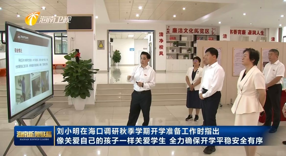 在我校图书馆,刘小明听取吕治国关于我校开学准备的相关汇报。吕治国谈到,我校党委高度重视迎新及校园安全工作,坚决杜绝风险隐患和突发事故,为师生营造安全舒心的校园环境,全力保障学校安全平稳有序顺利开学,做到让学生暖心、让家长放心。